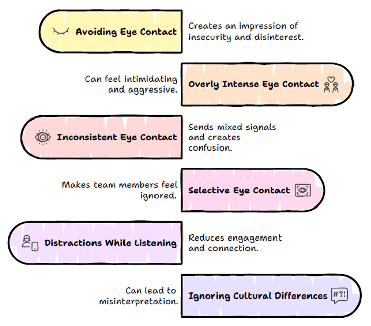 - Balanced eye contact helps employees feel that their thoughts and concerns are genuinely valued.